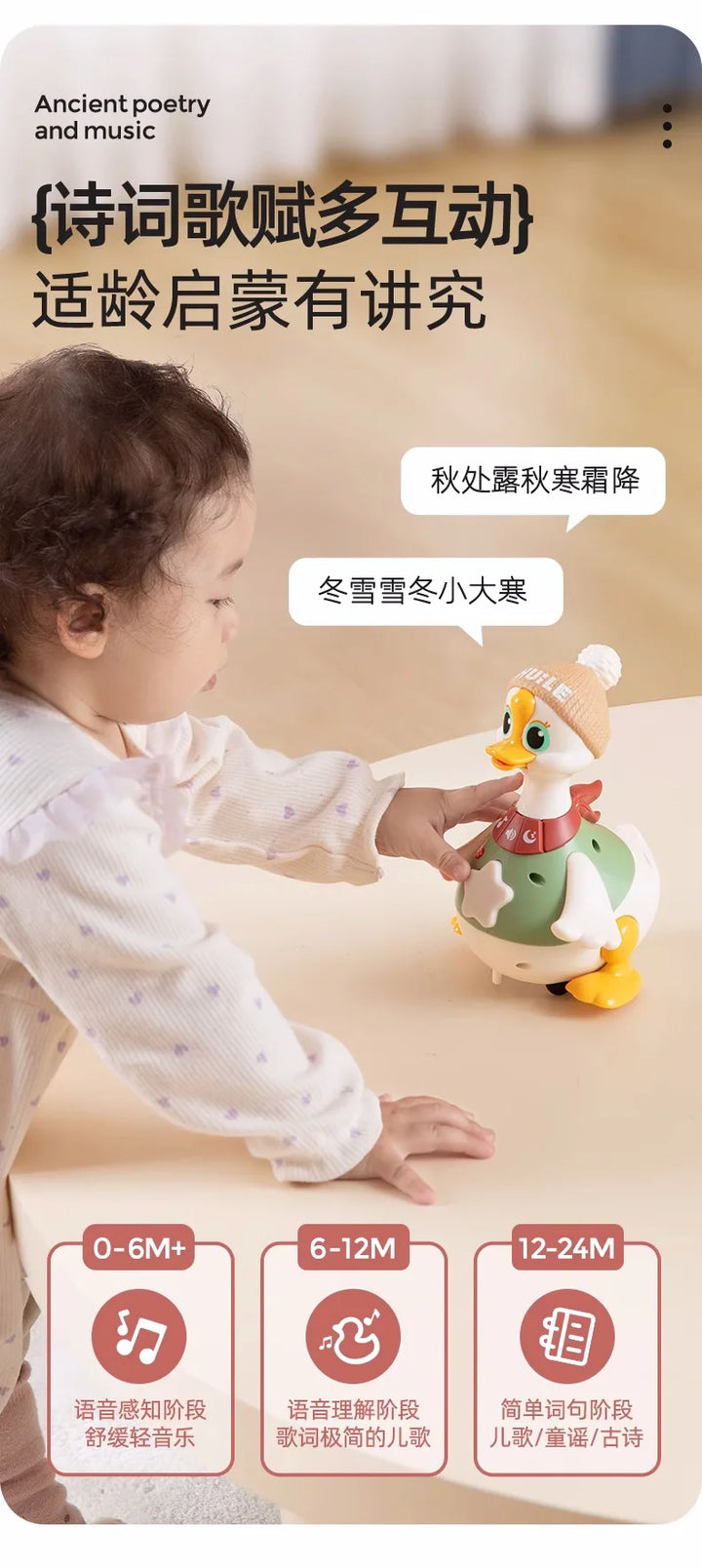The playful “mother and baby goose” design creates a nurturing and joyful interaction for little ones.