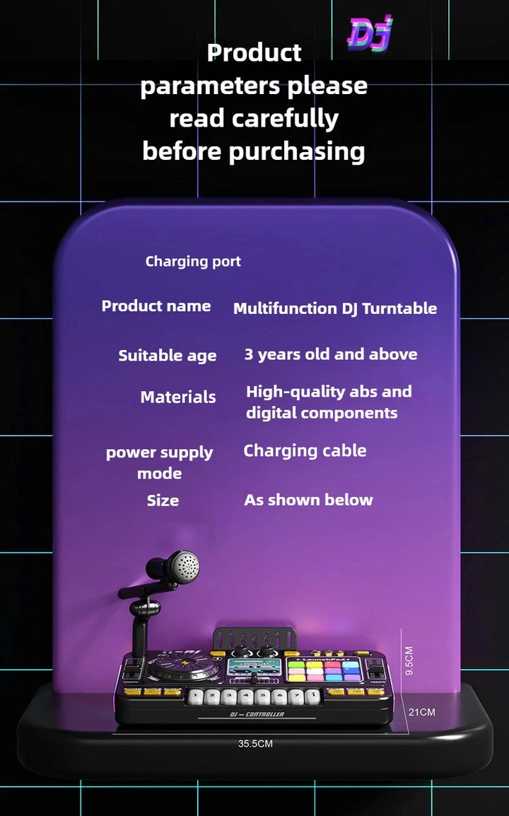 Included Components | DJ disc, microphone, built-in battery, sound control panel |
